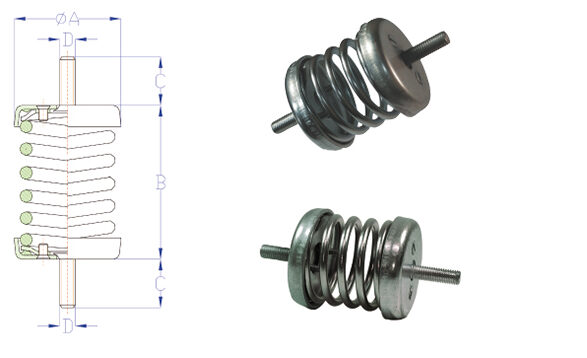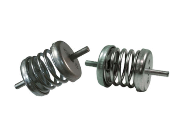 Series de aisladores metálicos diseñados para trabajar a compresión con un Aislamiento del 85% según las flechas y rpm siguientes: