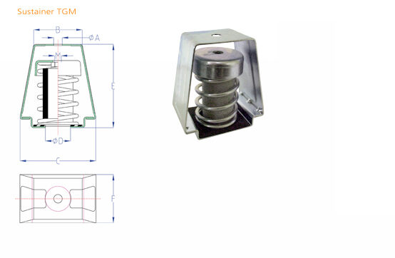 Estos sustainers han sido diseñados para ser colocados en los techos, aislando los ruidos, vibraciones y choques producidos por una fuente emisora (Aislamiento Activo).